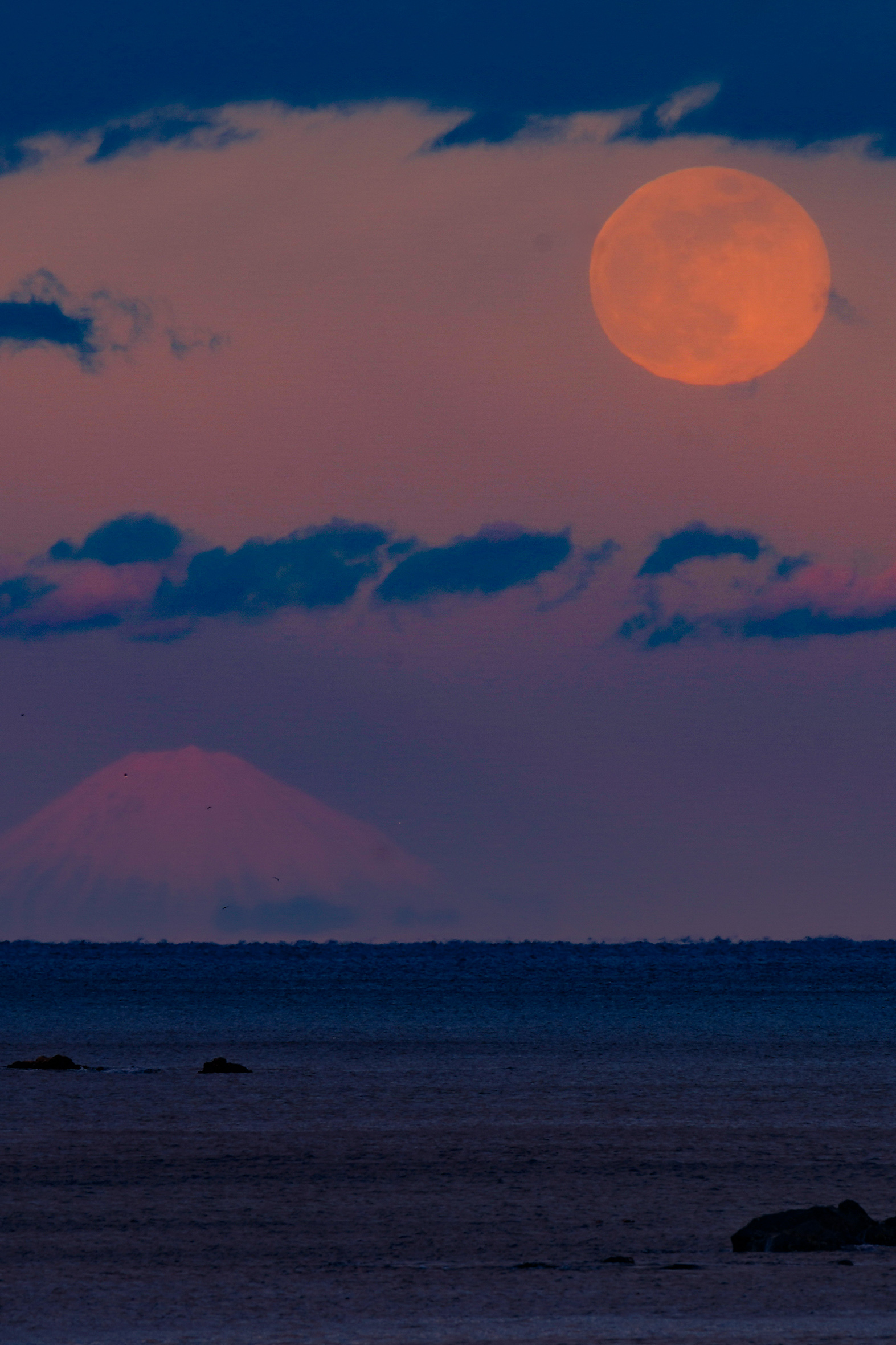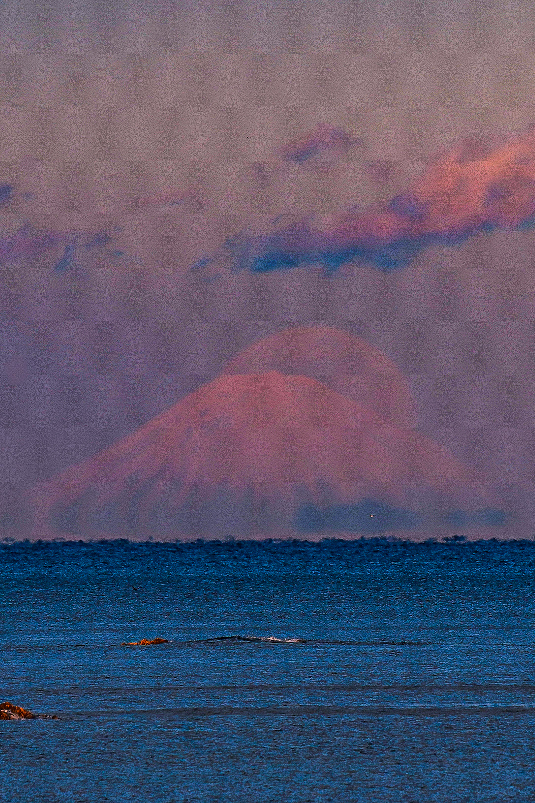 このあと、満月が富士山越しに昇ってくるといいな、と思いながら、、震えながらカメラを構えてると、
