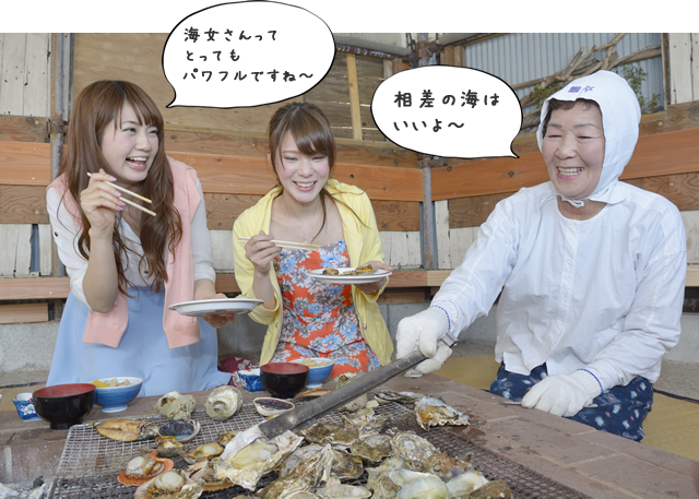 テレビで知って去年初めて行かせていただいてとても感動したので、今年も行って来ました。海女さんたちはとても元気いっぱいで、みんな笑顔が素敵です。明るい方ばかりで、元気をもらえました。心が癒され、明日からも頑張ろう❗って思わせてくれます。海女さんたちと写真もとってもらい、いい思いでが出来ました。来年も必ず行きますね。ありがとうございました。